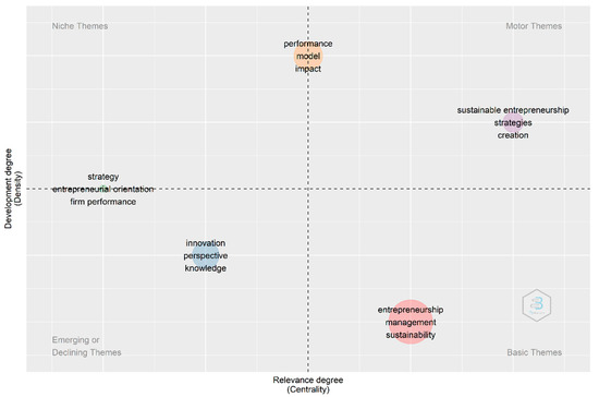 Despite the similitudes of the thematic addresses by the Global North and the Global South, a qualitative analysis of the resultant clusters of the Global South shows that, in addition to sustainable entrepreneurship and development and social sustainability, as in the Global North, this cluster includes gender issues, resources, and barriers, which is more adjusted to the Global South conditions, however, these issues are still incipient. Cluster 2 is more oriented toward management, business performance, and CSR; Cluster 3 toward strategy, competitiveness, and development; and Cluster 4 toward knowledge, innovation, and technology, which is another relevant concern of Global South countries that is related to entrepreneurial ecosystems.