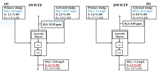 - The primary clarifier and anaerobic digester played prominent roles in reducing sulfate in the IWWTP and DWWTP because of biological sulfate reduction under anaerobic conditions.