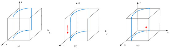 The dynamic evolutionary process of the government’s strategic choice is shown in Figure 2. We can draw some simple relationships from Figure 2b,c: The government’s choice of strategy is affected by the strategies of e-commerce enterprises and consumers. When the government opts for the “not vigorously” choice of poverty alleviation, that is, in the state of , if the total revenue of the government’s vigorously implemented poverty alleviation increases and the total cost is less at this time, improving the quality of agricultural products in collaboration with e-commerce enterprises, increasing the social reputation generated by vigorously supported farmers and agriculture, and reducing the incentives for e-commerce enterprises to participate in helping farmers, this will cause to decrease, and enter a state of . Then, the government will change their strategy, becoming more inclined to vigorously supporting the agricultural strategy. When the growth of agricultural products quality caused by the e-commerce platform’s poverty alleviation strategy is relatively high, there is ; the government has the motivation of “hitchhiking”, and will choose the “vigorously” strategy, that is, it will tend to relax support for farmers and agriculture.