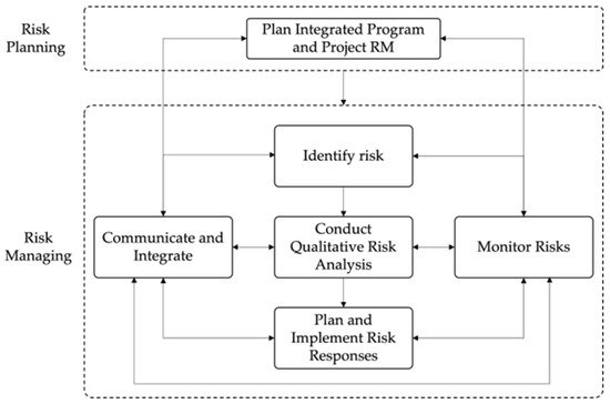 The definition of risk involves both uncertain events that may negatively (threats) and positively (opportunities) affect the project. Therefore, RM comprises a set of processes, techniques, and tools that aim to identify, analyze, and respond to the risks of a project, thus focusing on developing strategies that mitigate negative impacts and increase positive impacts on the program and project objectives [1,25]. It addresses risks according to the project’s exposure, adding activities and resources to the budget and adapting the project schedule [1].