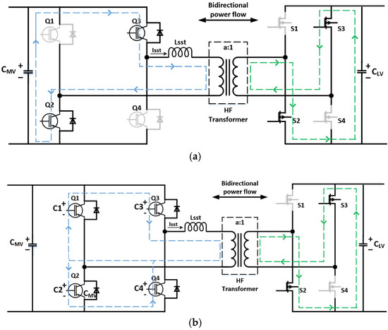 The dc–dc conversion stage is the key part for three-level STs since the whole power system efficiency generally depends on the dc–dc conversion efficiency. The high-frequency isolated dc–dc converters are significant devices for future smart-grid applications due to their acts as a DC transformers. However, the most challenging and remarkable stage is the dc–dc conversion stage of the ST because it must meet some strict requirements to achieve high conversion efficiency and galvanic isolation. These requirements are exemplified as a fast-switching speed, ZVS, ZCS, zero load current, minimum hard turn-on loss, low di/dt feature, high-frequency isolation, high-rated power, soft switching, and power density. While providing some requirements, researchers used variable converter topologies in different applications.