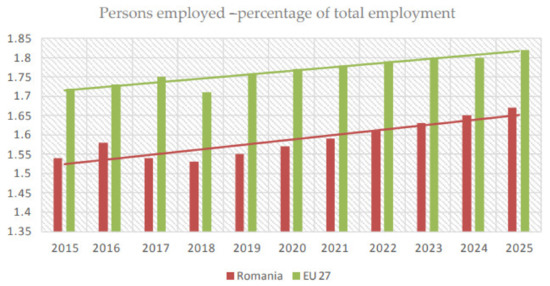 | Persons employed—percentage of total employment (PeE_ToE) | 1.71 * (%) | 89.5% of EU av. | 13 |