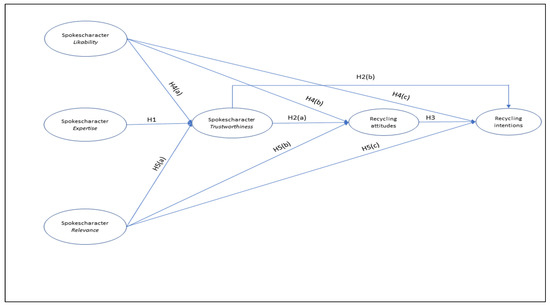 Spokescharacter likability will positively influence (a) spokescharacter trustworthiness, as well as the (b) recycling attitudes, and (c) recycling intentions of consumers in a recycling message.