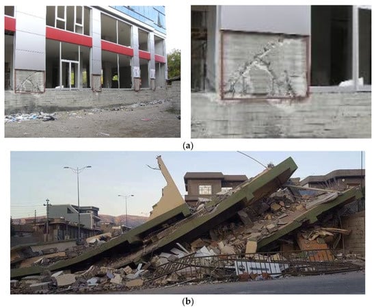 Failure of buildings due to torsional instability (Images by Idris Bedirhanoglu [,]). (a) Van earthquake, 2011 []. (b) Halabja earthquake, 2018 [].