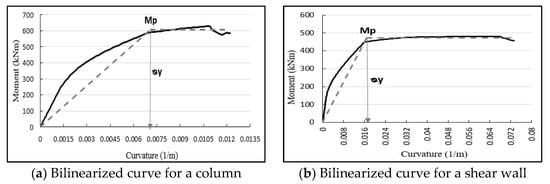 Moment-curvature relationship of a RC cross sections of a column and a shear wall.