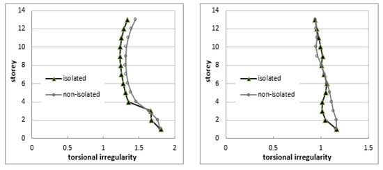 The obtained results showed that the torsional irregularity of a building can be improved or modified by using a base isolation system.