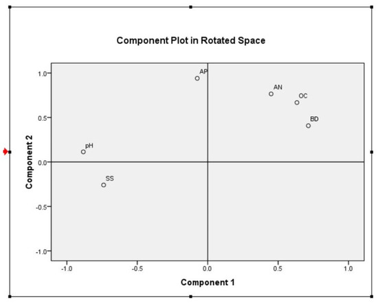 Principal components after Varimax rotation. AP = Available P, AN = Available N, OC = Organic carbon, BD = Bulk density, SS = Soil salinity.