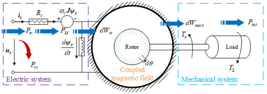 where , , , , are stator voltage, stator winding resistance, electromagnetic torque, magnetic energy and mechanical velocity of the motor, respectively.