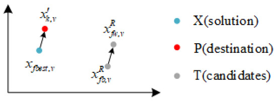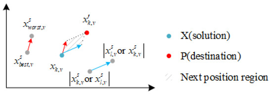 where the superscript “s” represents the candidate for quantitative selection based on SP. xbest,v, xworst,v represent the vth variable for the best and worst candidate, respectively. x′k,v is the updated value of xk,v. r1,k,v and r2,k,v are the two random numbers for the vth variable in the range [0, 1].