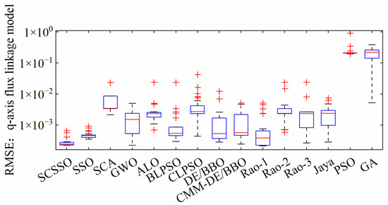 Best boxplot over 30 runs of different algorithms for q-axis flux linkage model.