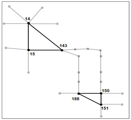 - The nodes in the subway network are unique, and it was stipulated that an adjacency matrix with a value of 1 indicates the connected edge between station pairs in the line network, and, conversely, if there is no relationship between two nodes, it is indicated by 0.
