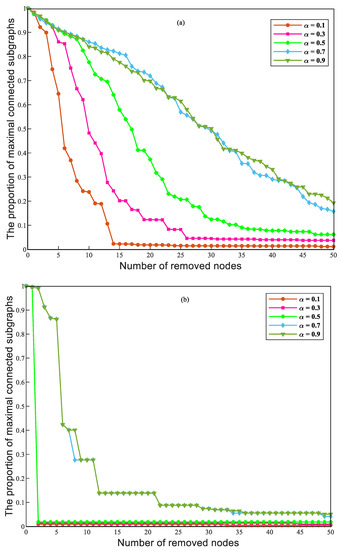 - Tian, H.; Guo, R.J. Study of Urban Road Network Cascading Failure based on Network Load Capacity Model. J. Dalian Jiaotong Univ. 2019, 40, 15–20. [Google Scholar]