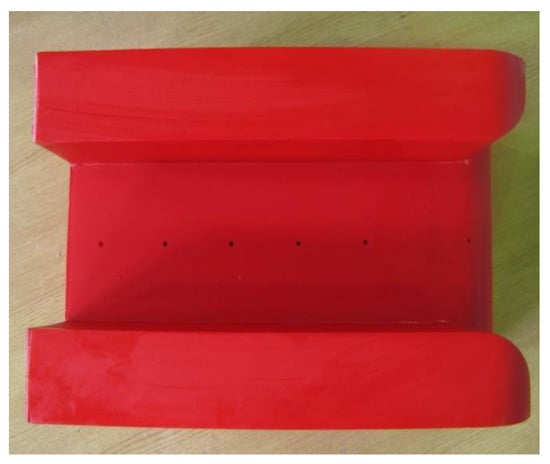 The current investigation aimed to simulate a combined compound rectangular broad-crested-weir gate using FLOW-3D software. In order to do this, validation of numerical code was carried out using experimental results. The literature review indicated that the compound BCW-gate structure has not been studied before. Therefore, the experimental results of a single compound broad-crested weir by Salmasi et al., [] were used for the calibration of CFD code. Salmasi et al. [] experimentally studied a single broad-crested weir and estimated its properties, as given in Table 1. To achieve the actual BCW, an attempt was made to deduce the relationship 0.1 < h1/L ≤ 0.35 (where h1 and L refer to the hydraulic head on the weir’s central section and the compound weir’s length, respectively) to establish the physical and arithmetic design []. The flow separation was decreased by rounding with a radius of 0.065 m at the weir entrance to develop physical and numerical models of the weir []. Figure 3 shows the geometry of the experimental study conducted by Salmasi et al., [].