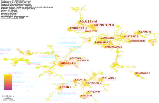 Second, the analyses of studies’ countries and institutions of origin, as well as the cooperation networks among authors, reveal that RS research emerged in the US. The US and its institutions dominate the field of RS research, exhibiting the most abundant research achievements. The US’s history of RS and immigration, as well as its political context, have made it the center of RS studies []. Specifically, leading scholars such as Johnston, Massey, Forrest, Poulsen, and Iceland, have made great contributions to RS research, helping establish a solid disciplinary base for its development.