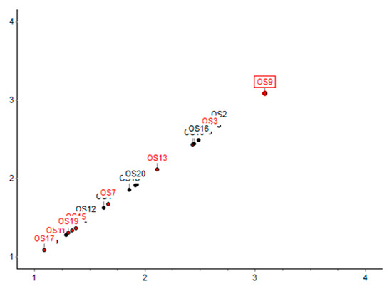 Figure 4 illustrates how the methodology evaluates each monitored subsystem or point’s individual cumulative (global) benefit. Following the global score value on both axes, the less time until (OS17) and the greater the work order priority (OS9) for maintenance attendance are based on the OS17 and OS9 values, respectively.