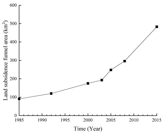 Growth of the land subsidence funnel area of the Jiangdong subsidence center.