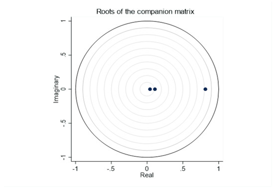 To achieve the reliability of the experimental results, the steady of the model should be tested before further analysis. According to Figure 2, it can be seen that the dynamic concomitant matrix characteristic roots are all less than 1 (located within the unit circle). Thus, it can be considered that the PVAR model established in this study is stable. The study can be continued.
