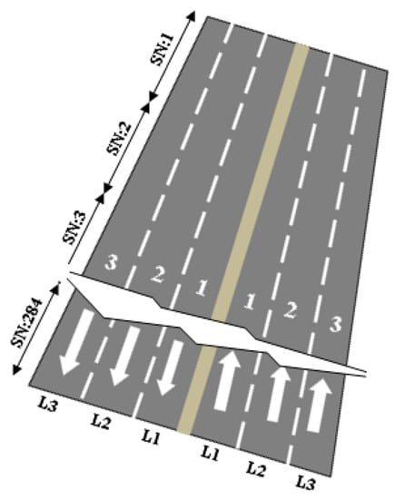 Sketch and Lane Numbering of 6-Lane Freeway.