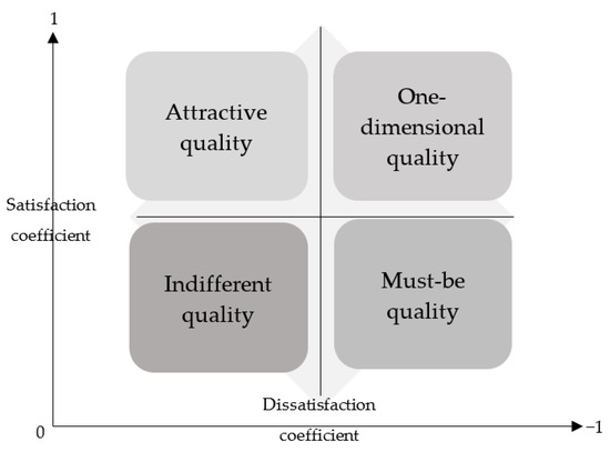 - Lim, S.U.; Park, Y.T. Potential Customer Satisfaction Improvement Index based on Kano Model. J. Korean Soc. Qual. Manag. 2010, 38, 248–260. [Google Scholar]
