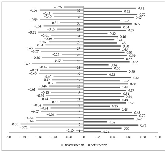 - TIMKO model: Third, the results of calculating the customer satisfaction and dissatisfaction coefficient proposed by TIMKO are as follows. The dissatisfaction coefficient was found to be relatively high in terms of quality factors, such as the cleanliness of the university campus, the lighting system of university buildings, and the ability of university staff to provide specific information to the students about the timing of service delivery. This is because, if the customer’s needs are not met in the relevant element, then customer dissatisfaction will be relatively high compared to other factors. The satisfaction coefficient was relatively high for items such as the university environment’s cleanliness, the reputation enjoyed by the university among employers, and the possibility of using the internet in the university environment. In the long run, universities that want to increase development sustainability should consider these factors;