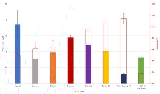 2.3. Screening of Substrates for Rhamnolipid Production