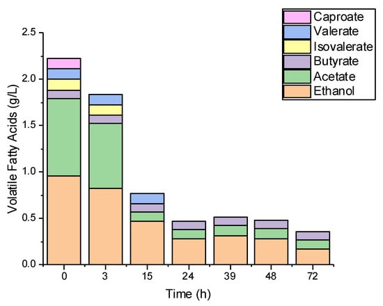 Volatile fatty acids (including alcohols) utilized during food waste hydrolysate fermentation.