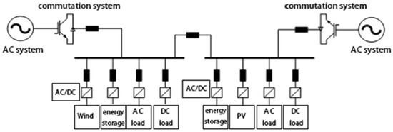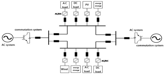 The basic topology of ADN in flexible DC mode can be divided into loop structure (Figure 5), radial structure (Figure 6) and two-terminal distribution structure (Figure 7). The analysis of ADN topology is the basis of constructing the interactive model of source, network and load under the safe operation of power grid.