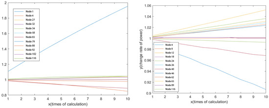 Select some of the power generation nodes and the change rate of the load node for example, and the result of the sensitivity change as shown in Figure 11.