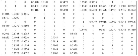 The IEEE 118 node compactness matrix is too large to be displayed in this paper, so the IEEE 14 node has been used as the basic calculation model of compactness matrix display. The compactness matrix generated by this method is as follows Figure 13.