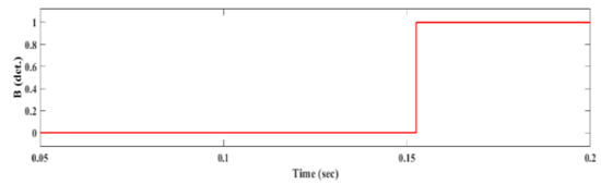 The THD and SRE criteria are used for the detection and direction of faults. The figure indicates that the THD is higher than the pre-defined threshold value and hence the fault is detected. The fault signal on DL-2 is of forward type, as SRE is 1. Therefore, to trip the respective phase, primary protection will work and isolate the faulty phase by generating the trip signal based on calculations of superimposed components and activates the breaker as shown in Figure 8. The results show that the proposed scheme can distinguish the single-phase tripping incident, thus avoiding the tripping of healthy phases, hence improving system reliability.