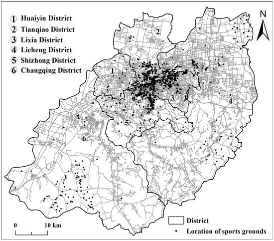 Distribution of public fitness venues in the main urban area of Jinan.