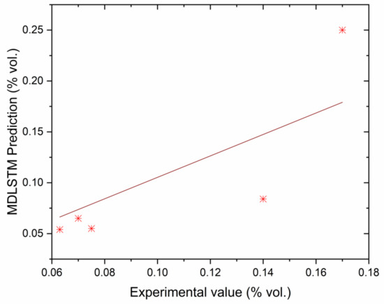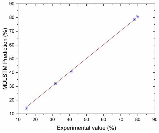 Correlation between MDLSTM predictions and experimental results for BSEC.