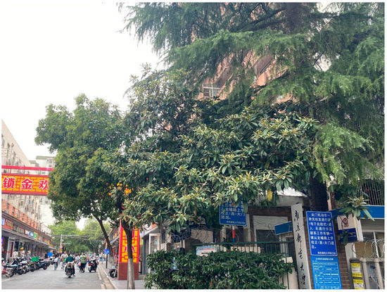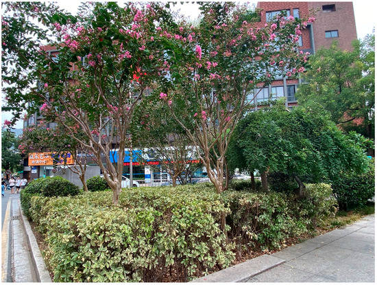 | Suojin I Village entrance intersection | Magnolia grandiflora, Cedrus deodara, Ulmus pumila and Ilex chinensis Sims, etc. (Figure 3). |