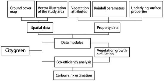 CITYgreen’s technical route for estimating the carbon sink of urban green spaces [13].