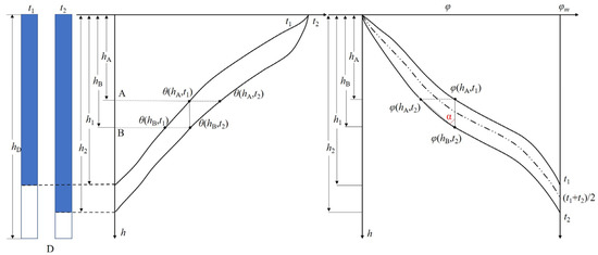 Assuming that the permeability coefficient of unsaturated soil remains unchanged in a small time period Δt = t2 − t1 according to Darcy’s law, the following can be obtained: