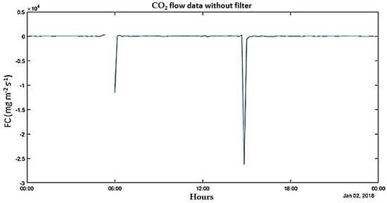 For the training of both models, it will be necessary to generate energy flows, which will be determined using the EC method, considering the vertical speed of the wind, CO2, and H2O concentrations, among other variables recorded by the tower. Equation (9) was used to determine H, (10) for LE, and (11) for FC.
