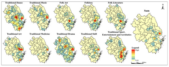People are the primary focus of cultural development [42], and every place has its own social and human history. The spatial distribution of ICH is more strongly influenced by regions with strong historical and cultural legacies, which are also highly rich in ICH.