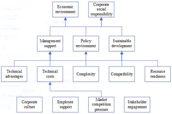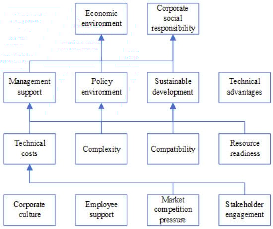 Through the above analysis, we established a system of drivers for the adoption of smart construction technology by China’s highway construction companies, as shown in Figure 2.