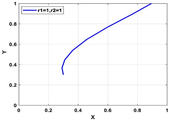 When both the consumer and manufacturer have no sentiments, it is assumed that r1 = r2 = 1. In this scenario, there is no difference between the RDEU evolutionary game and the traditional evolutionary game.