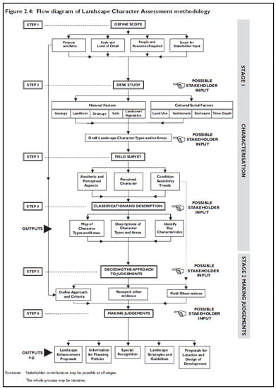 - Swanwick, C.; Land Use Consultants. Landscape Character Assessment. Guidance for England and Scotland; Countryside Agency and Scottish Natural Heritage: Inverness, UK, 2002; Available online: https://www.yumpu.com/en/document/view/25243736/landscape-character-assessment-guidance-for-england-and- (accessed on 17 May 2022).