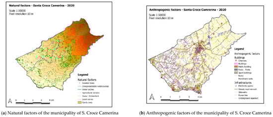Landscape Plan data for the municipality of S. Croce Camerina: (a) natural factors; (b) anthropogenic factors.