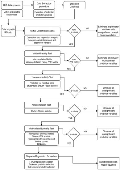 Flow-chart of developed conceptual procedural framework intended for testing the statistical significance of potential predictor variables (statistical indicators) contained in big data systems and develop a multiple regression prediction model.
