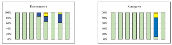 The contribution proportions of different sources to potential ecological risk are shown in Table 5. At the Datemonbetsu and Komagawa sampling sites, railway operation was the major potential contributor, with contributions of 44.58% and 31.83%, respectively. In the Tachikawa and Niigata sampling zones, natural sources were the dominant contributors, while the contributions of railway operation were only 16.97% and 17.91%, respectively. The contributions of railway operation to the ecological risk near diesel-driven railways were about twice as high as those near electricity-driven railways. This indicated that diesel-driven railways had a larger influence on ecology than electricity-driven railways. Automobile emissions were the second main contributor to the potential ecological risk in the Komagawa and Tachikawa areas, with contributions of 29.65% and 32.01%, respectively. In this research, industrial and agricultural activities only showed high contributions in the two sampling areas. Industrial activities were the third dominant contributor in Komagawa, with a contribution of 20.97%, and agricultural activities were the second contributor in Datemonbetsu, with a contribution of 23.95%.