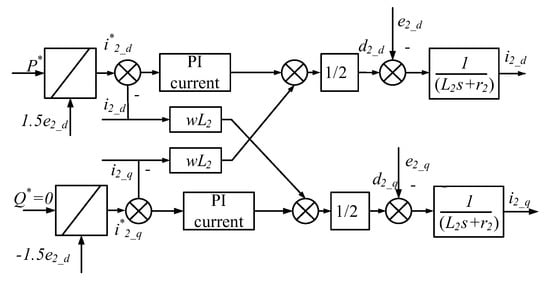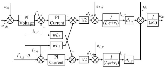 We establish the control block diagram of the inverter in the converter in the dq coordinate system, as shown in Figure 4.