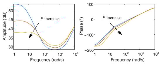 Figure 9 shows the bode diagram of the input impedance of the DC inverter before optimization when the power changes. When the power changes from 1 kW to 6 kW, the amplitude of the input impedance of the low-frequency inverter decreases, and the negative impedance characteristic increases. The decrease in the input impedance amplitude can easily cause instability in the cascade system, so the stability of the system can be improved by increasing the amplitude of the input impedance.