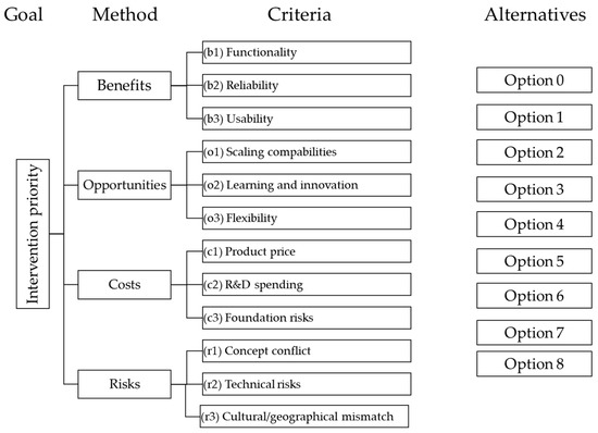 - Wijnmalen, D.J. Analysis of benefits, opportunities, costs, and risks (BOCR) with the AHP–ANP: A critical validation. Math. Comput. Model. 2007, 46, 892–905. [Google Scholar] [CrossRef]