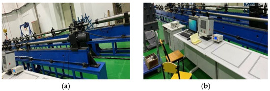SHPB experimental system, (a): incident bar, and (b): data collection system.