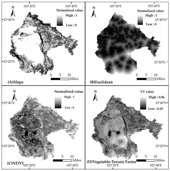 Normalized value (A) Slope, (B) Euclidean, (C) NDVI and (D) VT value.