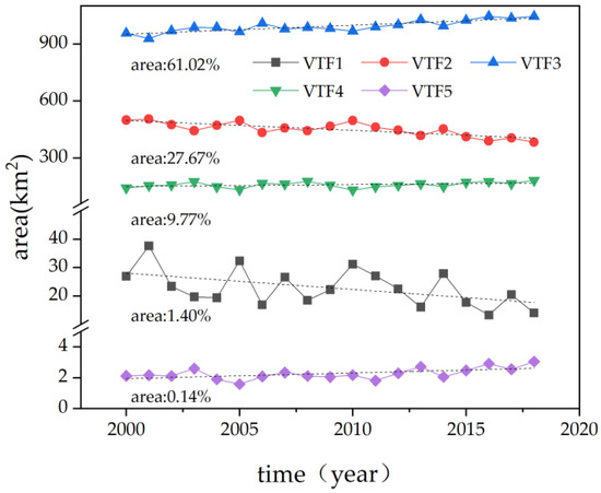 Time variation of VTF areas in NURS from 2000 to 2018.