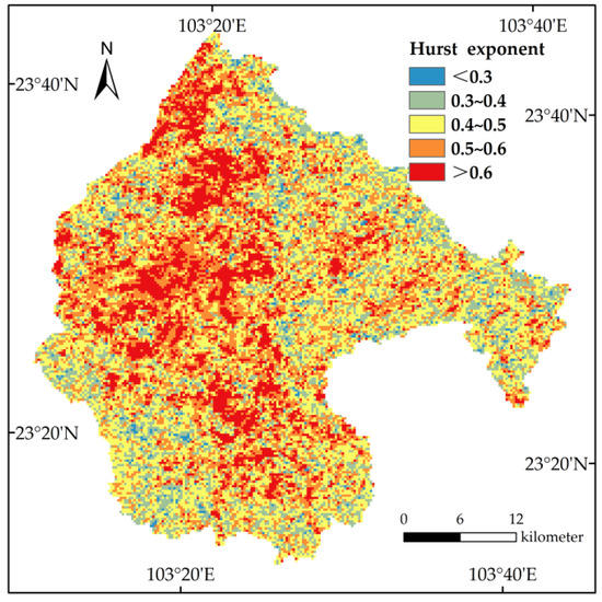 Hurst exponent trends of VTF in NURS from 2000 to 2018.